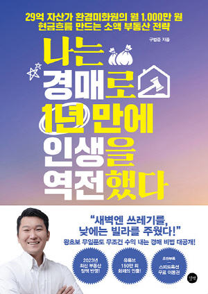 《나는 경매로 1년 만에 인생을 역전했다》는 인생에서 불행한 일만 연속이었던 한 30대 남자가 경매를 통해 29억 원 자산가로 다시 태어나기까지의 과정을 상세히 다뤘다. 현직 환경미화원인 그는 매일 새벽 쓰레기를 줍고, 퇴근 후에는 경매장을 오가며 하루도 빠짐없이 경매 투자에 매진했다. 그 결과 1년 만에 빌라 9채를 낙찰받아 매달 직장인 월급만큼의 월세를 받게 됐고, 3년 만에 부동산 13채를 소유하며 목표했던 현금흐름 월 1,000만 원을 달성했다.