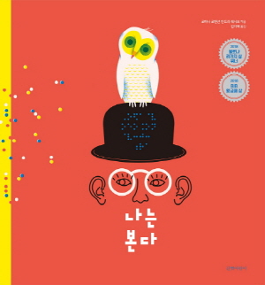 《크게 작게 소곤소곤》, 《나는 본다》 두 작품은 화려하고 독특한 표지에서부터 독자들의 시선을 사로잡습니다. 전자는 눈부신 노랑색 바탕에 한 사람이 커다란 토끼 모양 귀를 쫑긋거리며 독자를 유혹하고, 후자는 강렬한 형광 빛 핑크색 바탕 위에 안경 쓴 남자와 정면을 응시하는 올빼미의 커다랗고 동그란 두 눈이 보는 이의 궁금증을 유발합니다.
