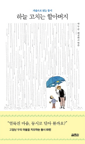 자연의 시인으로 불리며 어른과 아이가 함께 공감할 수 있는 시 세계를 구축해 왔던 동시작가이자 아동문학가 박두순이 어른이 읽기 좋은 우리 동시 69편을 소개한다. 매주 목요일 조선일보에 연재되었던 '가슴으로 읽는 동시'를 엮은 『하늘 고치는 할아버지』는 마음을 맑히는 대한민국 대표 동시를 선별해 해설과 함께 들려준다. 노래하듯 따라 읽다 보면 삶으로 얼룩진 마음이 개는 것을 느낄 수 있는 동시들이다.