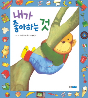 『내가 좋아하는 것』에서 주목할 지점은 행복감입니다. 앤서니 브라운의 침팬지 친구는 시종일관 자신이 좋아하는 것들을 이야기하면서 세상에서 가장 행복한 표정으로 독자들을 마주하지요. 어린 독자들에게는 이렇게나 재미난 일들이 많다고, 함께 놀이하자고 속삭이고, 이제 성인이 되어 버린 독자에게는 어린 시절, 그 아련하게 행복했던 시절을 떠올리게 합니다. 이것이 『내가 좋아하는 것』이 누구에게나 사랑스러울 수밖에 없는 이유일 겁니다.『내가 좋아하는 것』에도 앙증맞은 앤서니 브라운의 숨바꼭질 놀이가 숨어 있습니다. 마치 기억처럼 스치는 사각 프레임을 잘 보세요. 그림 그리기 장면에는 붓들이, 자전거 타기 장면에는 동글동글 바퀴가, 바다에서 첨벙대기 장면에는 물고기가 장식처럼 달려 있습니다. 엄마와 아이가 함께 책을 읽으며 찾기 놀이를 해 보세요. 책장을 넘길 때마다 넘치는 행복감을 몇 배 더 느낄 수 있을 겁니다.