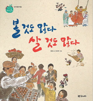 <볼 것도 많다 살 것도 많다>는 우리나라의 민속 명절과 풍습 13개를 동시와 함께 소개하는 책이에요. 풍부한 표현이 담긴 동시와 서정적인 그림으로 명절과 풍습을 소개하고 있어서, 아이들이 우리 조상들의 생활을 좀 더 친근하게 느낄 수 있어요. 우리의 민속 명절과 풍습을 잘 표현해 낸 동시와 그림을 감상하면서, 우리 조상들의 슬기로운 지혜를 느껴 보세요.