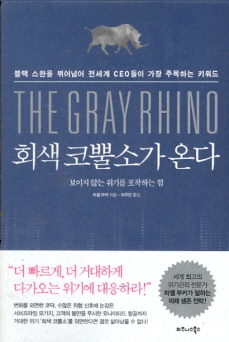 위기 경영의 패러다임 전환이 시급한 때다. 우리가 날마다 자초하는 위험 혹은 우리가 무시하기로 선택한 위험을 해결하는 문제에 대해 저자는 경이로운 주장을 펼친다. 당신이 회색 코뿔소와 눈이 마주쳤다면 이미 때는 늦었다. 갑작스럽게 닥친 재난을 의미하는 블랙 스완이 우리에게 익숙한 일상의 언어가 됐듯이 이제 회색 코뿔소도 사람들의 입에서 수시로 오르내릴 것이다.