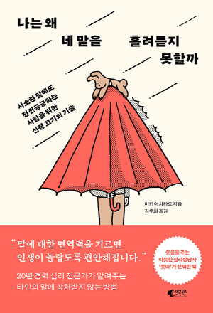 위의 글을 읽으며 고개를 끄덕이는 당신에게, 이 책 『나는 왜 네 말을 흘려듣지 못할까』를 제안한다. 20년 경력의 심리상담가 미키 이치타로가 쓴 이 책은, 타인의 말 때문에 쉽게 상처받지만 차마 상담소의 문턱을 넘지 못하고 끙끙 앓는 이들을 위한 심리처방전이다. 그는 이 책을 통해 타인의 말에 지나치게 신경 쓰는 이유를 논리적으로 짚고, 상처를 주는 사람과 받는 사람의 심리를 파헤친다. 그런 뒤, 말에 대한 ‘면역력’을 기를 수 있는 구체적이고 매우 실용적인 해결책까지 제시한다.