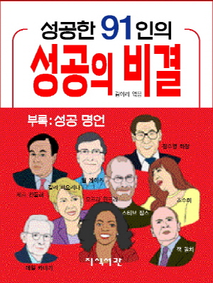 스티브 잡스(애플 창업자) 8 / 마츠시타 고노스케(일본의 대부호, 사업가) 10 / 미국의 실업가, 자동차왕 헨리 포드 12 / 하워드 슐츠(스타 벅스 회장) 14 / 샘 월튼(월마트의 창업자) 16 / 데일 카네기(경영 컨설턴트, 저술가) 19 / 채제공(조선 정조 때의 문신) 22 / 리카싱(동아시아 최고 갑부, 청쿵 그룹 회장) 24 / 월트 디즈니(애니메이션 제작자) 26 / 장개석(중국의 지도자) 27 / 그랜트(미국의 제18대 대통령) 29 / 노 벨(노벨상 창시자) 30 / 윈스턴 처칠(영국 수상) 32 / 에디슨(미국의 발명왕) 35 / 데니스 파커(외다리 축구 스타) 37 / 잭 웰치(제너럴 일렉트릭의 최고 경영자) 39 / 짐 클라크(헬시온 회사 대표) 43 / 칼리 피오리나(휴렛패커드(HP) 대표) 45 / 리자청(중국 최고의 부자) 47 / 임상옥(조선시대의 거상) 50 / 제프 헨더슨(미국 최고의 요리사) 52 / 빌 클린턴(미국의 대통령) 54 / 힐러리 클린턴(미국의 여성 대통령 후보자) 56 / 유일한(유한양행 회장) 58 / 마이클 조던(농구 선수) 60 / 장 크리스티앙(캐나다 총리) 62 / 링 컨(미국의 제16대 대통령) 64 / 오프라 윈프리(미국의 방송인) 66 / 빌 게이츠(미국의 부호·자선가, 전 MS 경영인) 69 / 앤드류 카네기(미국의 실업가, 자선가, 철강왕) 72 / 이병철(삼성 그룹 창립자) 76 / 정주영(현대 그룹 창업자) 79 / 토마스(켄터키 프라이드 치킨 회사 창업자) 82 / 록펠러(미국의 전설적인 대부호) 84 / 그래프드(미국의 치즈왕) 87 / 워너 메이커(미국의 백화점왕) 88 / 토스카니니(지휘자) 91 / 조만식 선생(독립 운동가) 93 / 마크 피셔(자기 계발 전문가, 작가) 95 / 박세리(골프 선수) 96 / 웨렌 버핏(세계적인 부호) 97 / 크론 카이퍼(미국의 언론인) 100 / 아인슈타인(천재 과학자) 101 / 가가린(우주 비행사) 103 / 왕융칭(대만 제일의 갑부, 포모사 회장) 104 / 나폴레옹 힐(성공학 프로그램 개발자) 106 / 손정의(소프트뱅크 회장) 110 / 윤석금(웅진 그룹 회장) 113 / 콜린 파웰(미국의 전 국무장관) 115 / 제프 킨들러(제약업체 화이자의 사장) 117 / 제임스 레이니 교수(전 미국 대사) 119 / 조용기 목사(여의도 순복음 교회 원로 목사) 122 / 파우자 싱(세계 최고령 마라톤 완주자) 125 / 조지 워싱턴(미국의 초대 대통령) 127 / 퓰리처(신문왕이 된 언론인) 129 / 루스벨트(미국의 대통령) 131 / 오바마(미국 최초의 흑인 대통령) 135 / 로젠버그(던킨 도너츠의 창업주) 137 / 하이드(미국의 실업가, 맨소래담 기술 개발자) 139 / 슈바이처(아프리카의 성자) 141 / 정근모 박사(과학자, 원자력 전문가) 143 / 마스다 미쓰히로(일본의 기업가) 145 / 장영신(애경 그룹 회장) 148 / 폴 마이어(기네스북에 오른 최연소 보험 세일즈맨) 151 / 밥 피어스(월드비전 창시자) 154 / 김윤종(SYK 글로벌 대표이사) 156페 니(백화점왕) 158 / 콘라드 힐튼(세계적인 호텔 사업가) 160 / 폴 게티(미국의 부호) 161 / 조앤 롤링(영국 소설가, 《해리 포터》 작가) 163 / 에릭 웨이언메이어(시각 장애 등반가) 165 / 루치아노 베네통(세계적인 의류 기업가) 166 / 커넬 샌더스(KFC 창시자) 167 / 오 명(동아일보 사장) 169 / 김광석(참존화장품 사장) 171 / 김덕중(아주대학교 총장) 173 / 박은수(변호사) 176 / 이현세(만화가) 178 / 김향수(아남 그룹 회장) 180 / 이상수(허브 사업가) 182 / 지미 카터(전 미국 대통령) 184 / 프랑수아 미슐랭(미쉐린사 최고 경영자) 187 / 피터 드러커(미래 경영학자, 작가) 188 / 조수미(성악가) 190 / 리콴유(전 싱가포르 총리) 191 / 유상옥(코리아나 화장품 회장) 192 / 정문술(전 미래산업 회장) 194 / 최수부(광동제약 회장) 196 / 박인천(금호아시아나 그룹 창업주) 198 / 안철수(‘안철수 연구소’ 창업자, 대학 교수) 200 / 존 애사라프(인디아나 리맥스 사장) 202 / 성공 명언 204