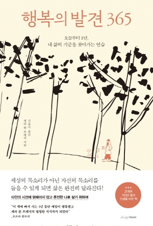 ≪행복의 발견 365≫은 완벽하지 않은 날들을 최대한 만족스럽게 사는 법에 대한 책이다. 눈앞에 닥친 마감일, 진척을 보이지 않는 프로젝트, 부족한 통장 잔고, 밀린 집안일, 배우자와의 의견 충돌 같이 골치 아픈 문젯거리들이 모두 해결된 미래가 아니라 그 문제를 안고 있는 지금, 여기서 행복해지는 구체적인 방법이 담겨 있다.